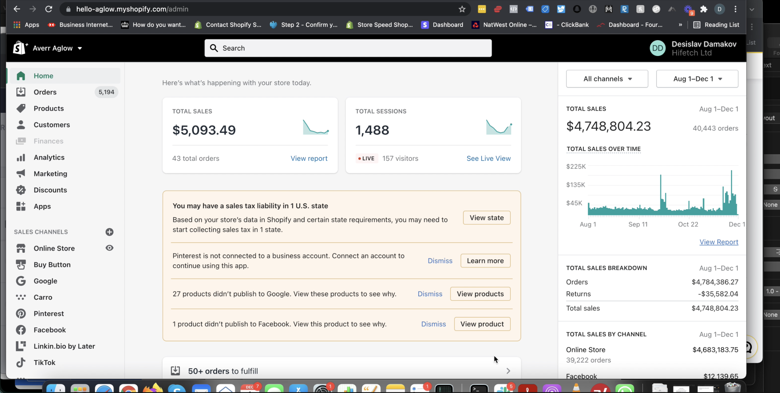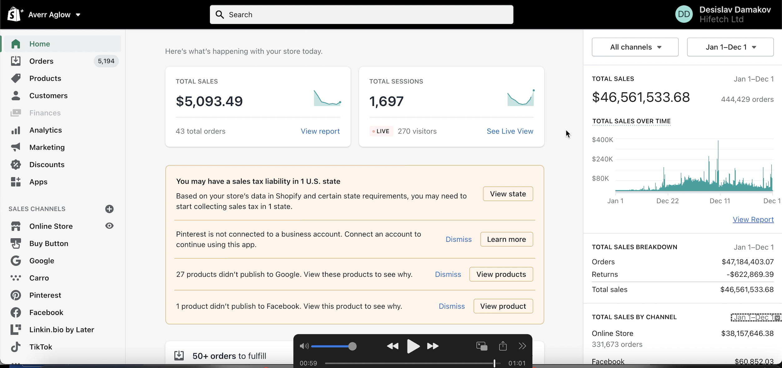 AverrAglow Shopify store data — ad account performance, May 2023