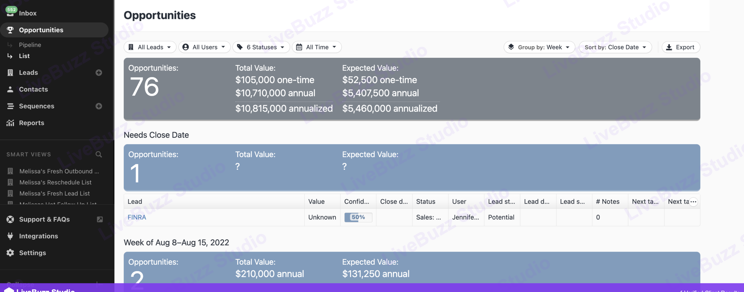 Opportunities — 76 opps · $10,815,000 annualised