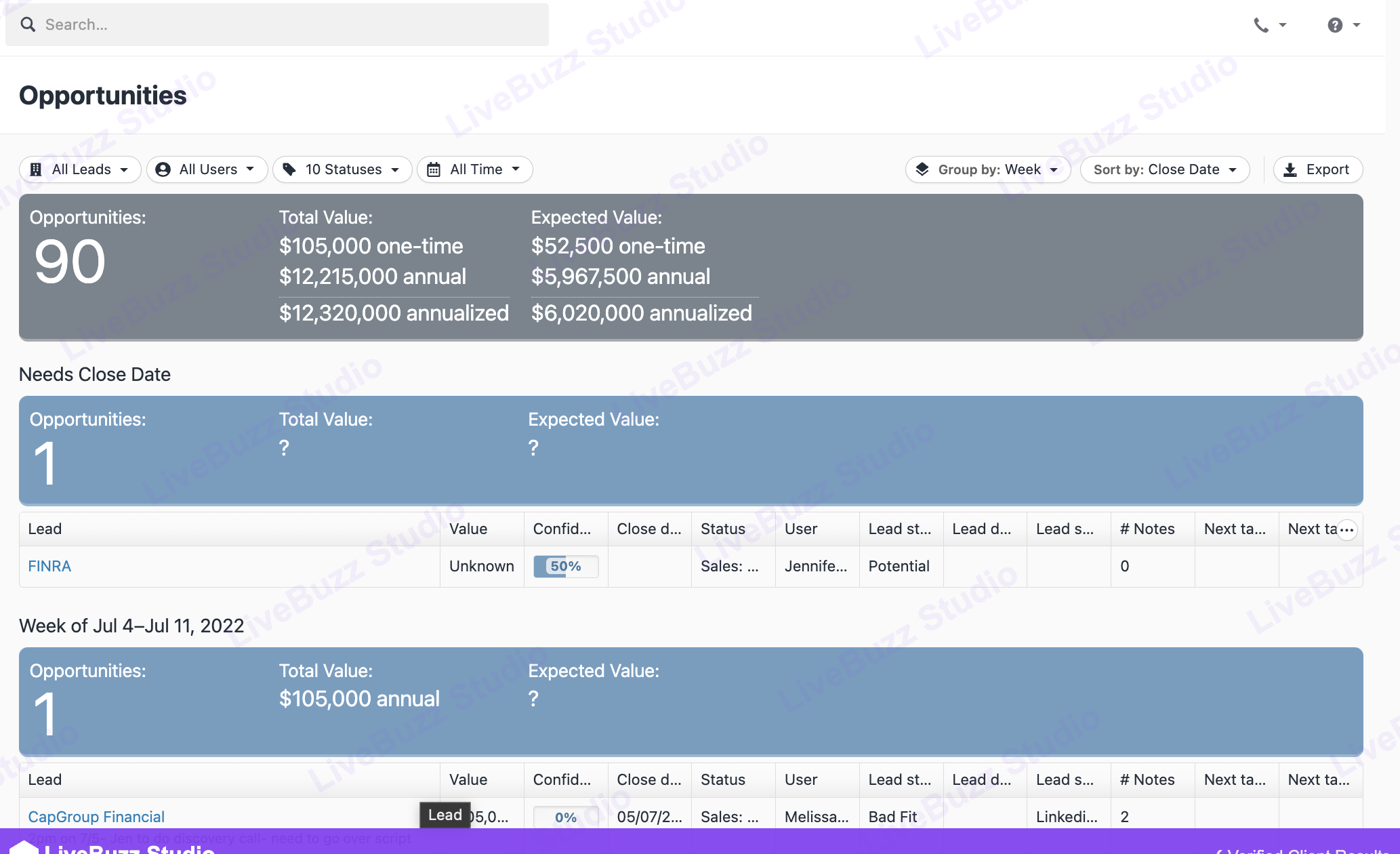 CRM Opportunities — 90 opps · $12,320,000 annualised total pipeline